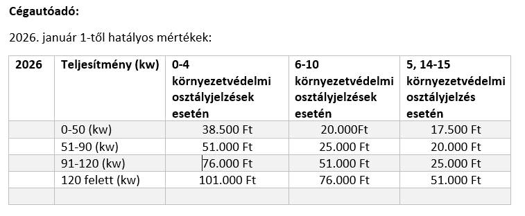 Gépjárműadó 2026. január 1-től hatályos mértékek és mentességek